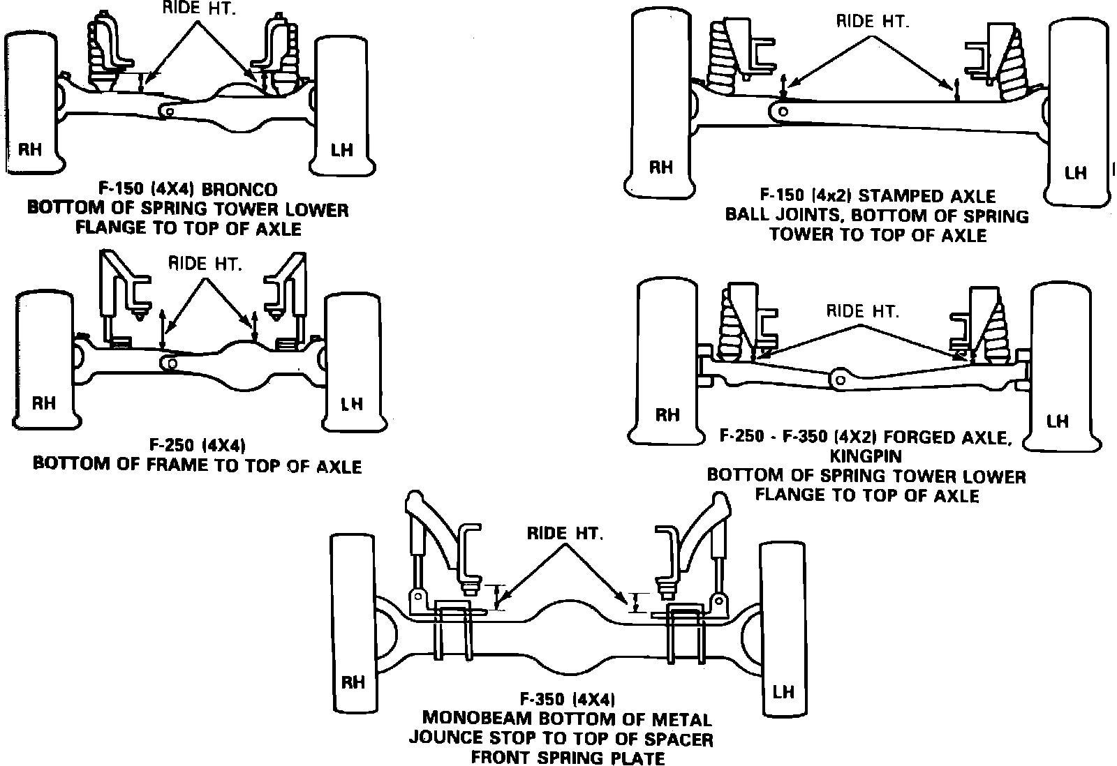 Fig. 7 Measuring riding height. 1980---85 F-100---350 & Bronco: