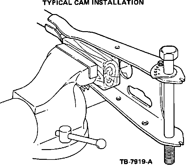 5. Figure 9 shows a typical cam installation. Each hole in the cam represents a 1/2 degree caster increase. A caster increase of approximately 2 degrees for F-150 4x2 for example will be obtained by mounting the cam with the self-tapping screw in