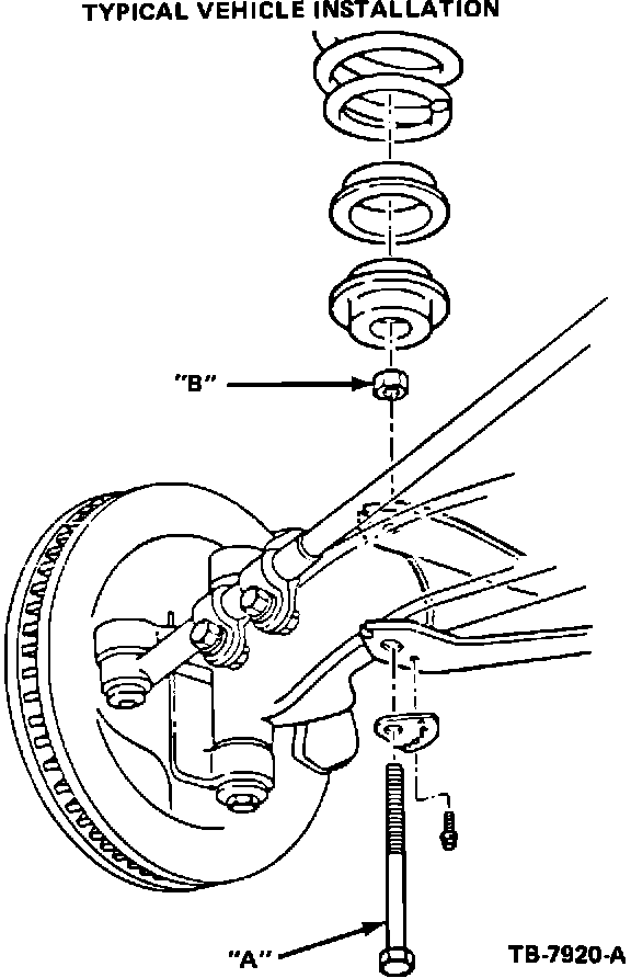 6. Figure 10 shows a typical F-100/150 4x2 vehicle installation. TORQUE BOLT A AND NUT B TO: