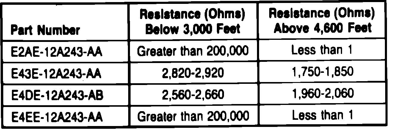 Ignition barometric pressure switch resistance chart. 1985-87