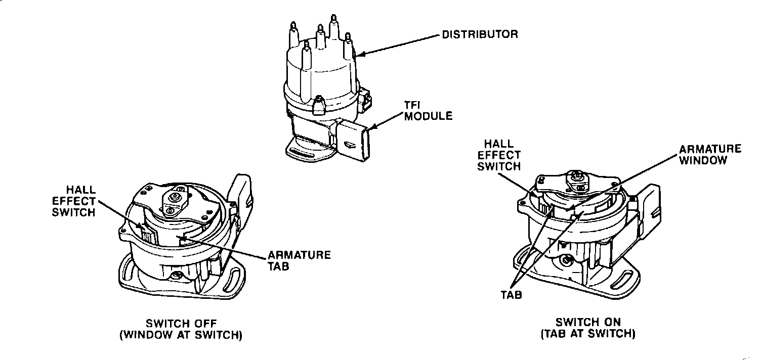The PIP signal is created in the Hall Effect and Stator assembly and indicates crankshaft position and engine RPM Fig. 21. The PIP signal is fed to both the TFI module and the ECA.