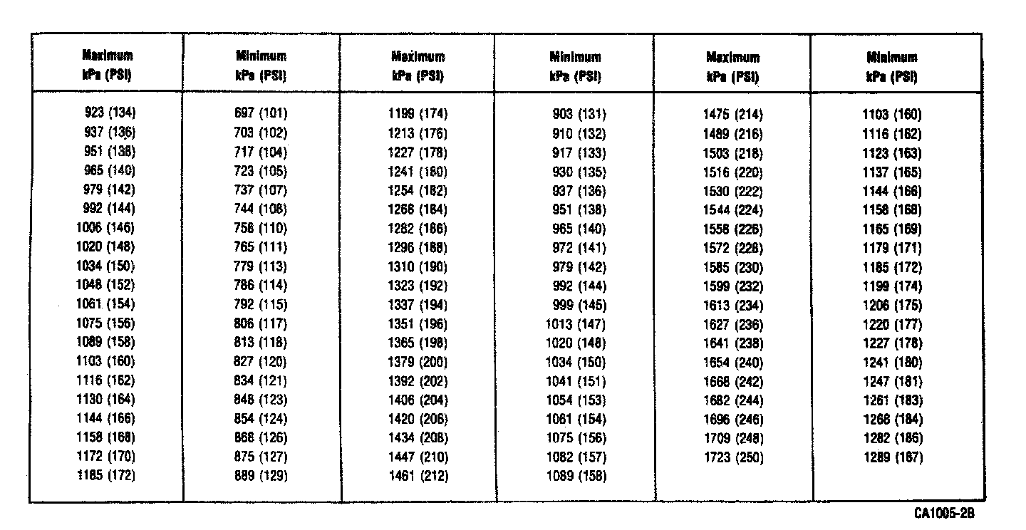 Compression Test Pressure Limit Chart: