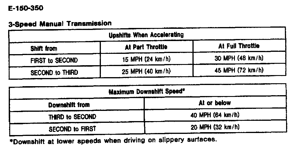 Ford 3.03 3-spd M/T, Shift Speeds (E150-350):