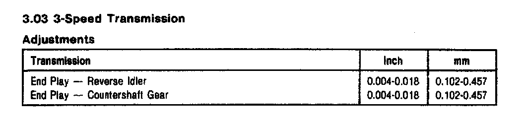 Ford 3.03 3-spd M/T, Transmission End Play: