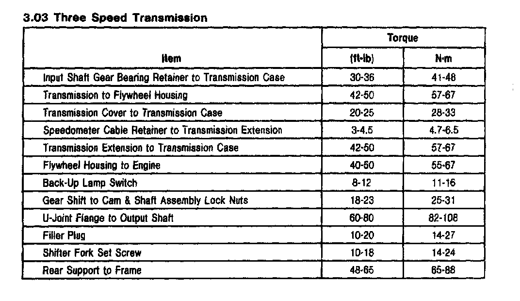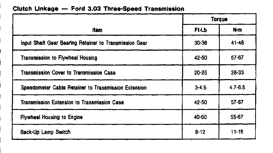 Ford 3.03 3-spd M/T, Transmission Torque: