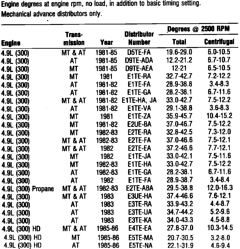 DISTRIBUTOR TIMING ADVANCE: