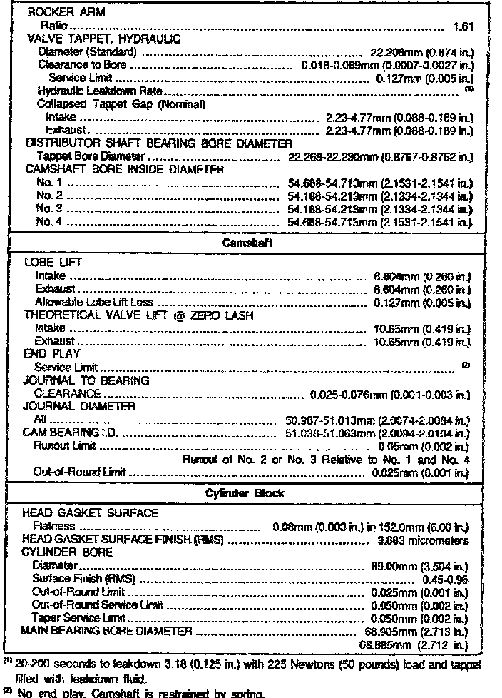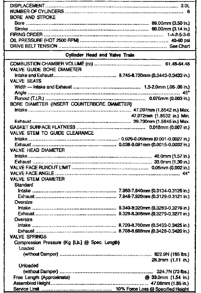 3.0L Engine Mechanical Data: