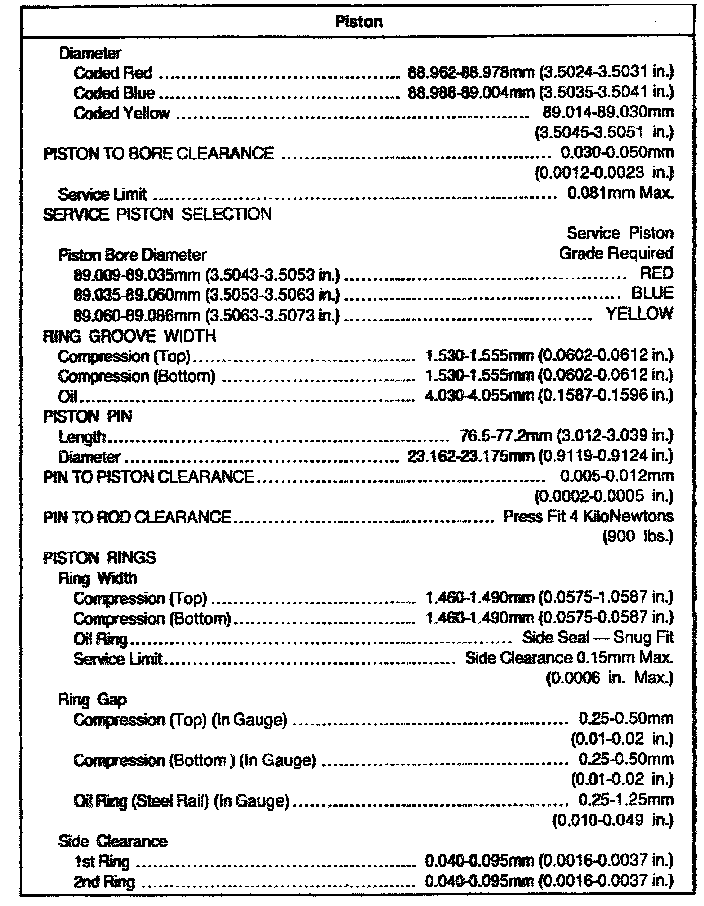 General Engine Specifications