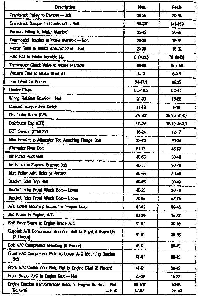 Torque Specifications