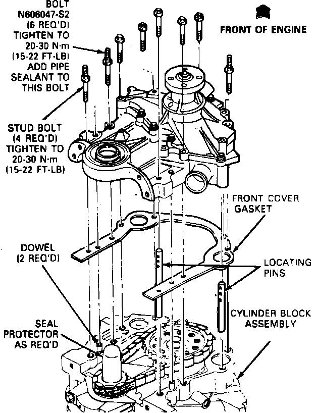 9. Coat sealing surfaces of front cover and engine block with sealing compound.