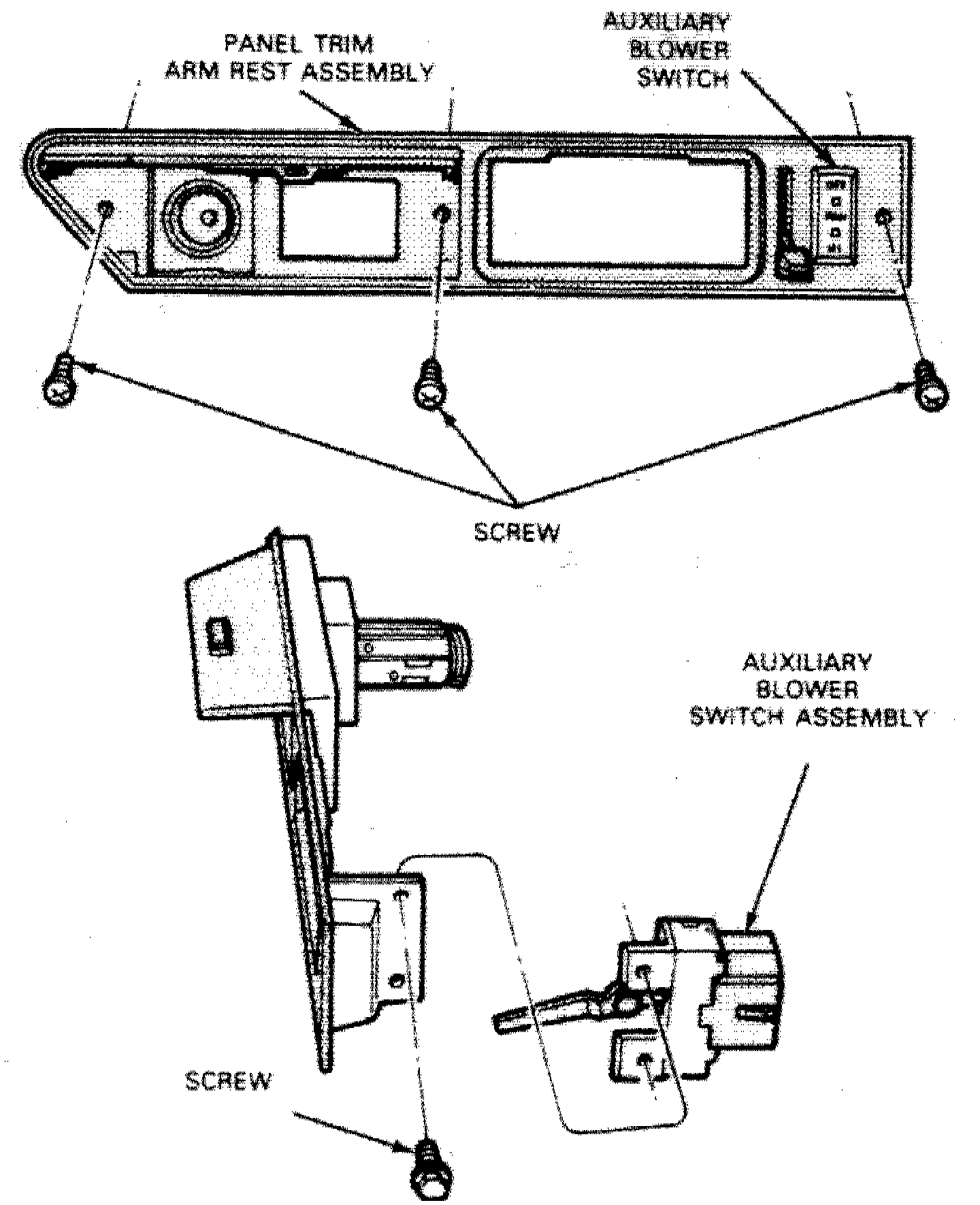 4. Remove blower switch to control assembly attaching screws, then the blower switch.