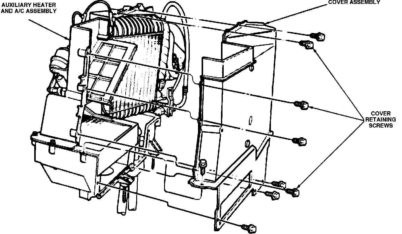 4. Remove auxiliary heater cover assembly retaining screws, then separate cover from auxiliary heater.