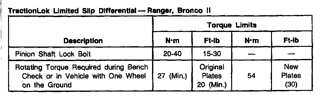 Ford Traction Lok, Clutch Plate Torque: