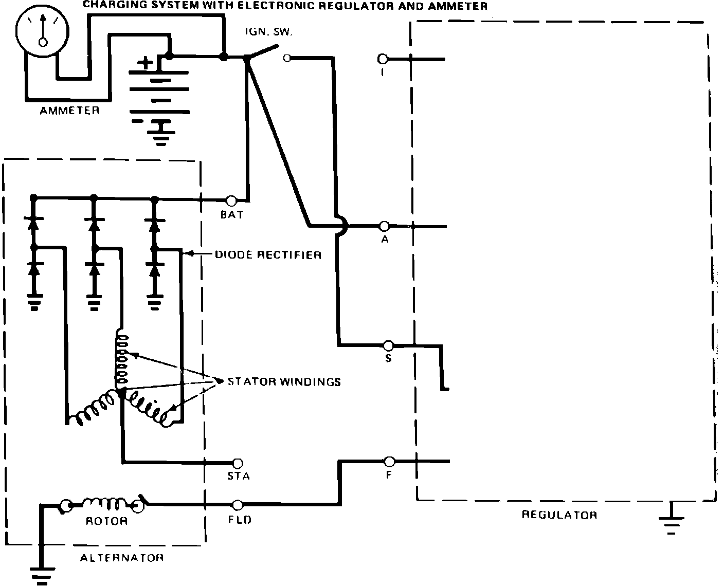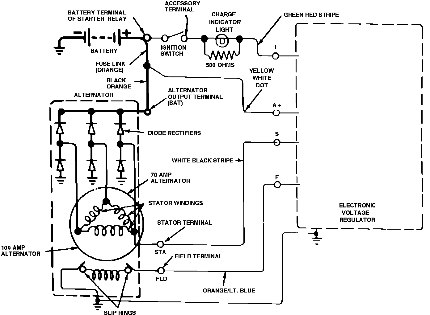are same as for rear terminal alternator. However, the internal wiring, Figs. 3 and 7, and bench test procedures differ.