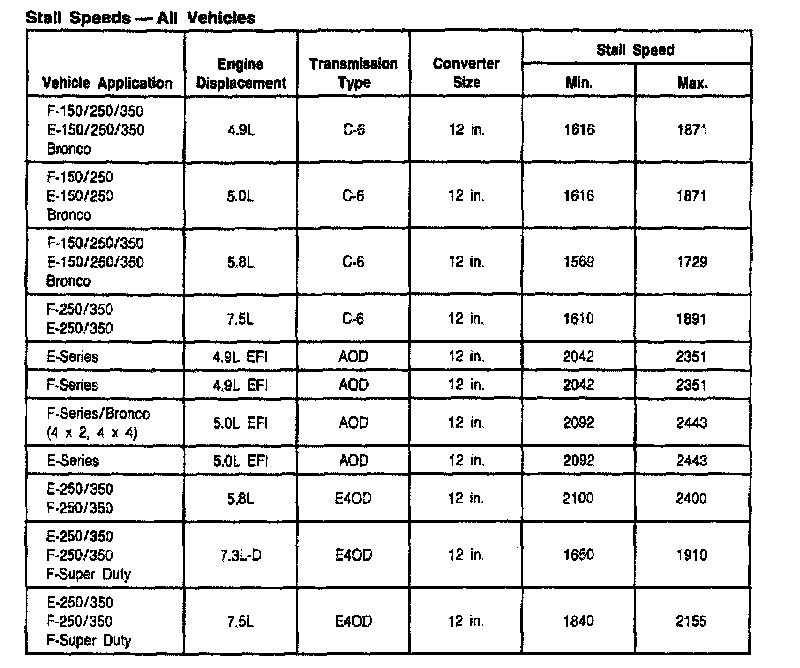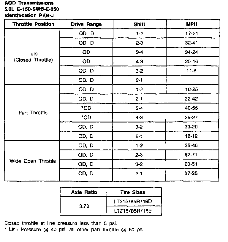 AOD 4-spd A/T, Shift Speeds (5.0L E150/E250):