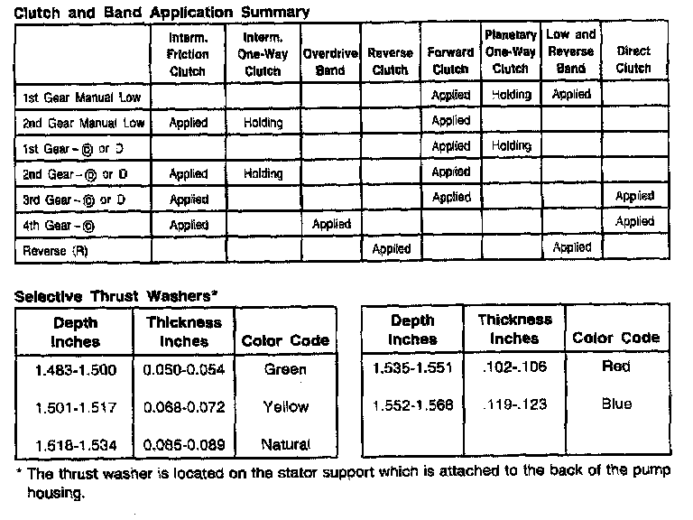 AOD 4-spd A/T, Clutch/Band Application-Thrust Washers: