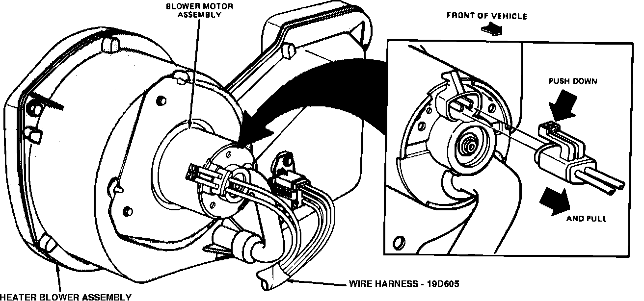 2. Disconnect wire connectors from blower motor, Fig. 28.