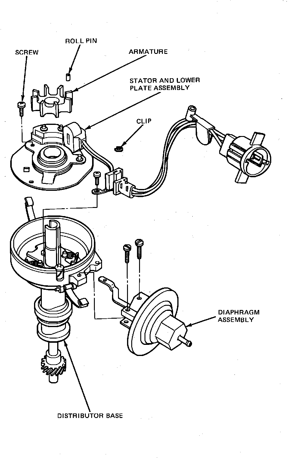 4. Mark position of distributor in engine and position of rotor on distributor housing for installation reference.