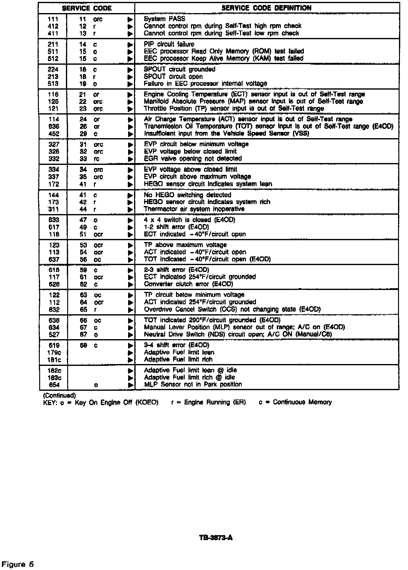 The new PCM has a new strategy that will use a three-digit self test error code. Figures 5 and 6 list the cross reference between two- and three-digit codes.