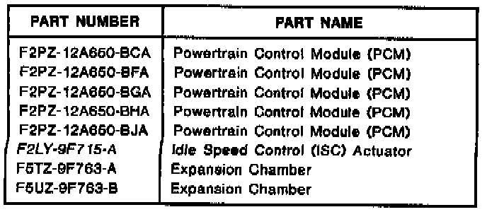 2. Replace the Powertrain Control Module (see Application Charts in Figures 2 and 3). Refer to the appropriate Service Manual for removal and installation procedures.