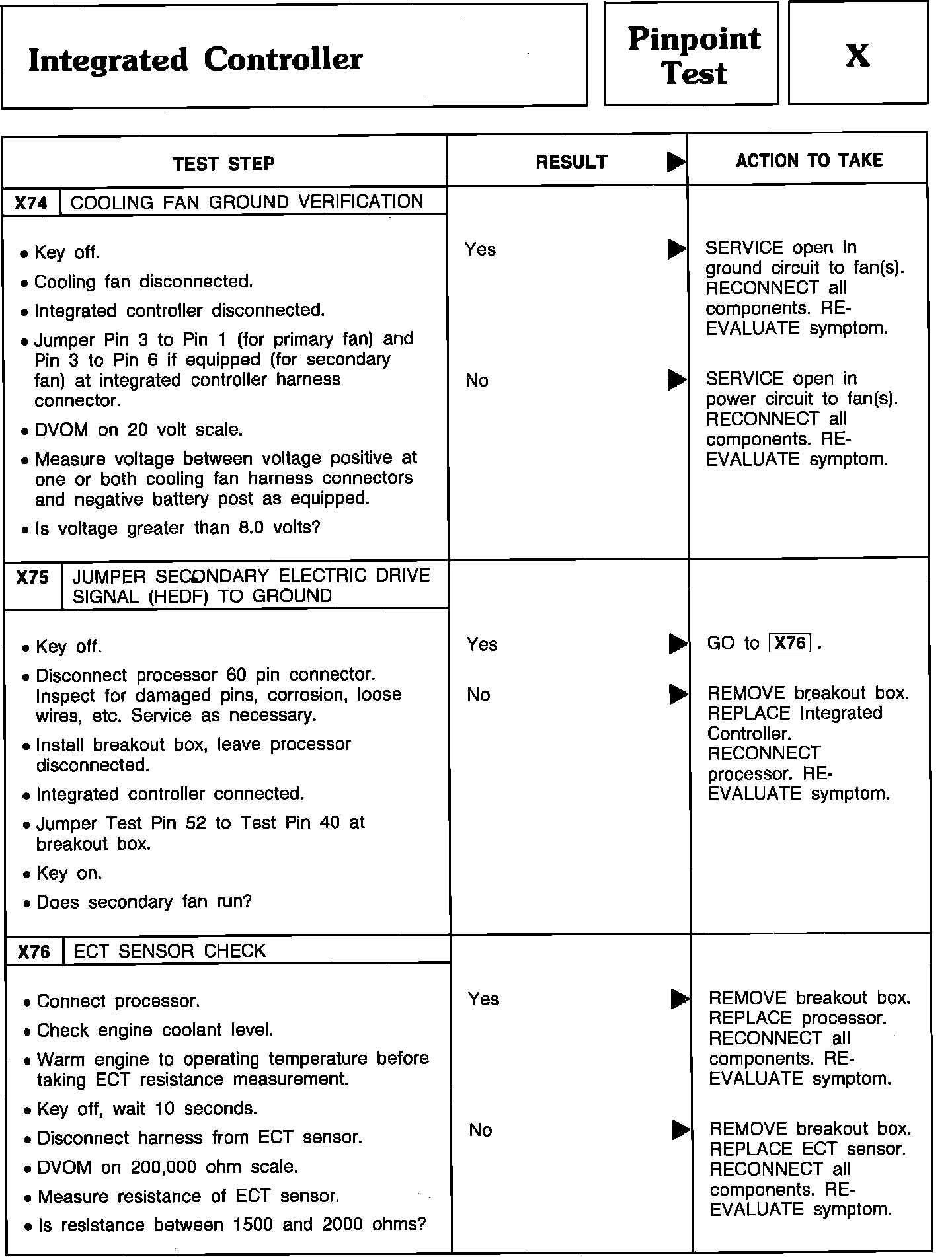 Pinpoint Test X74 Thru X76 - Integrated Controller:
