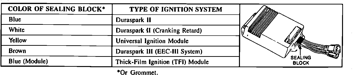 For proper ignition module identification refer to Fig. 1. The modules are not interchangeable, Dura Spark II has 6 wire connector while Dura Spark III has a 5 wire connector.