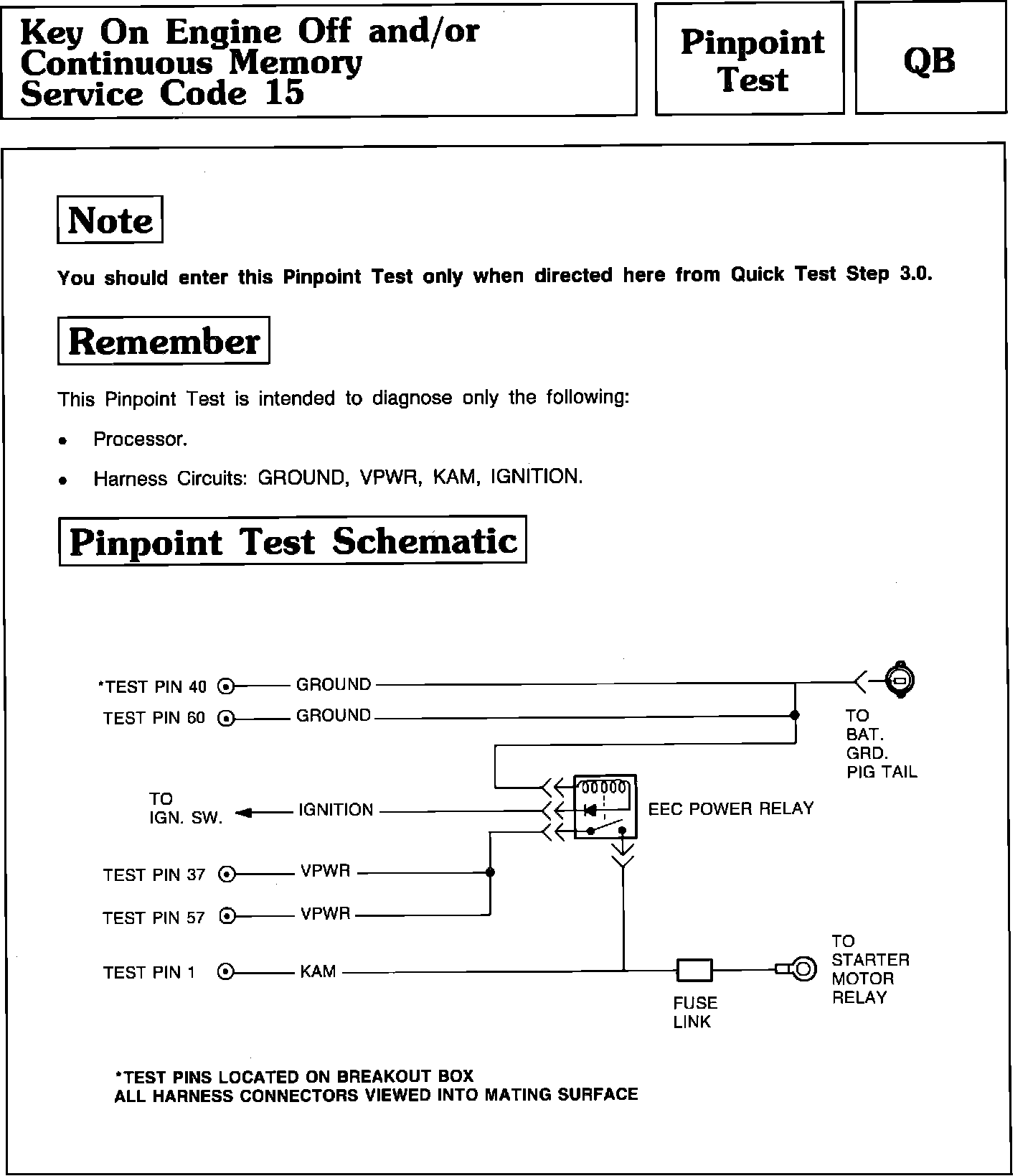Pinpoint Test QB - Key On Engine Off and/or Continuous Memory Code 15: