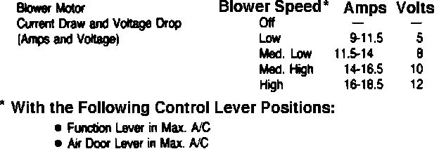 Fig. 41 Blower motor current draw & voltage test chart.: