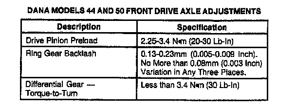 Dana 44/50 IFS, Ring Gear Backlash: