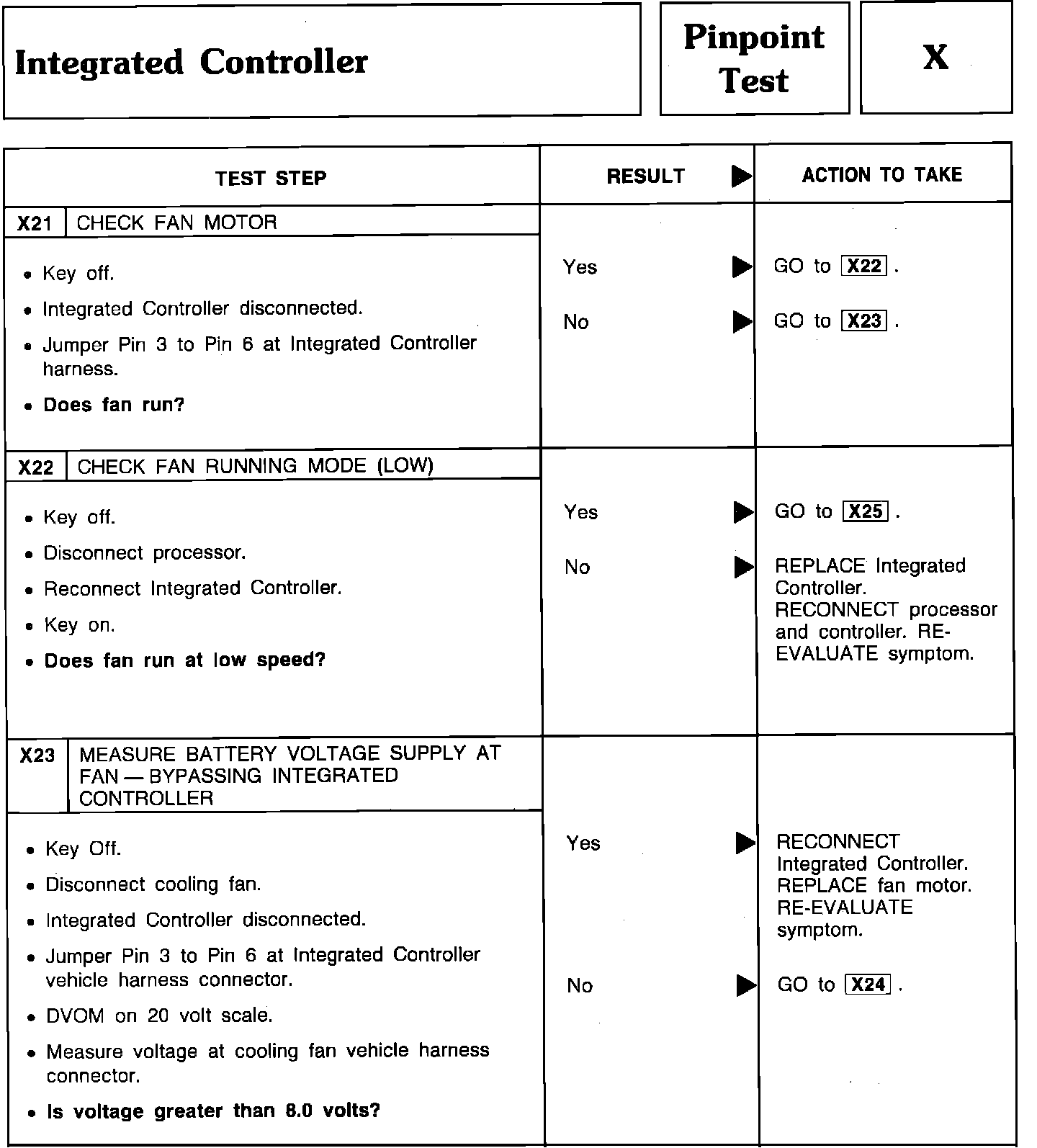 Pinpoint Test X21 Thru X23 - Integrated Controller: