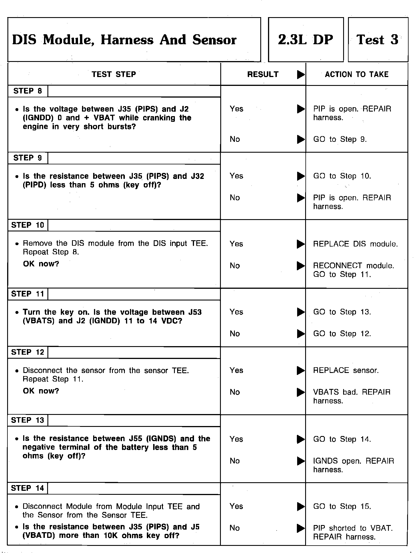 DIS Module, Harness & Sensor Steps 8 thru 14: