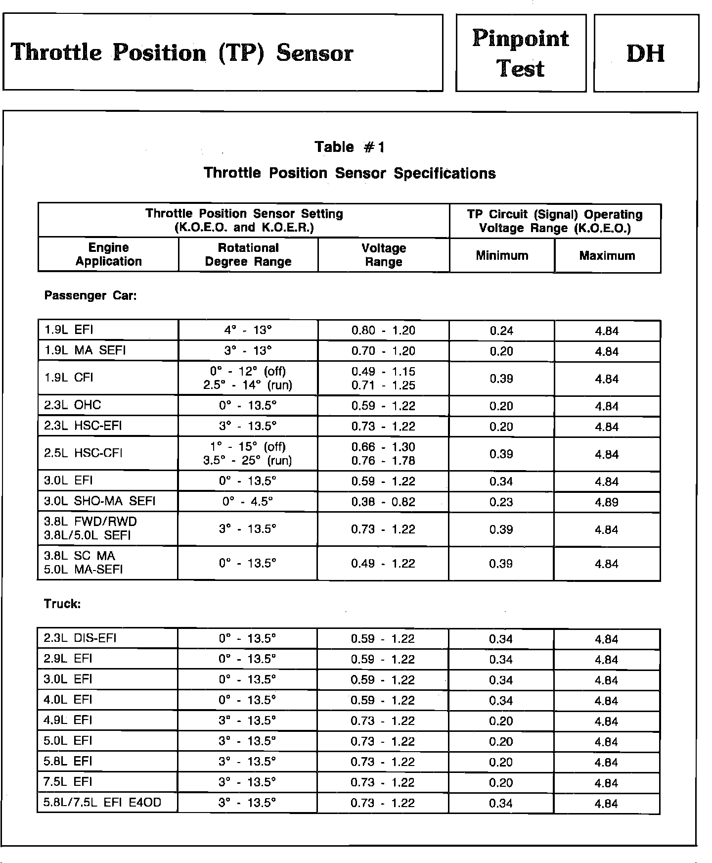 Pinpoint Test DH - Throttle Position Sensor (TPS):