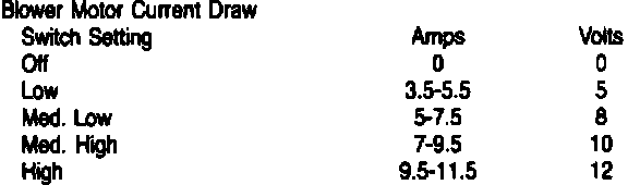 Fig. 40 Blower motor current draw & voltage test chart.: