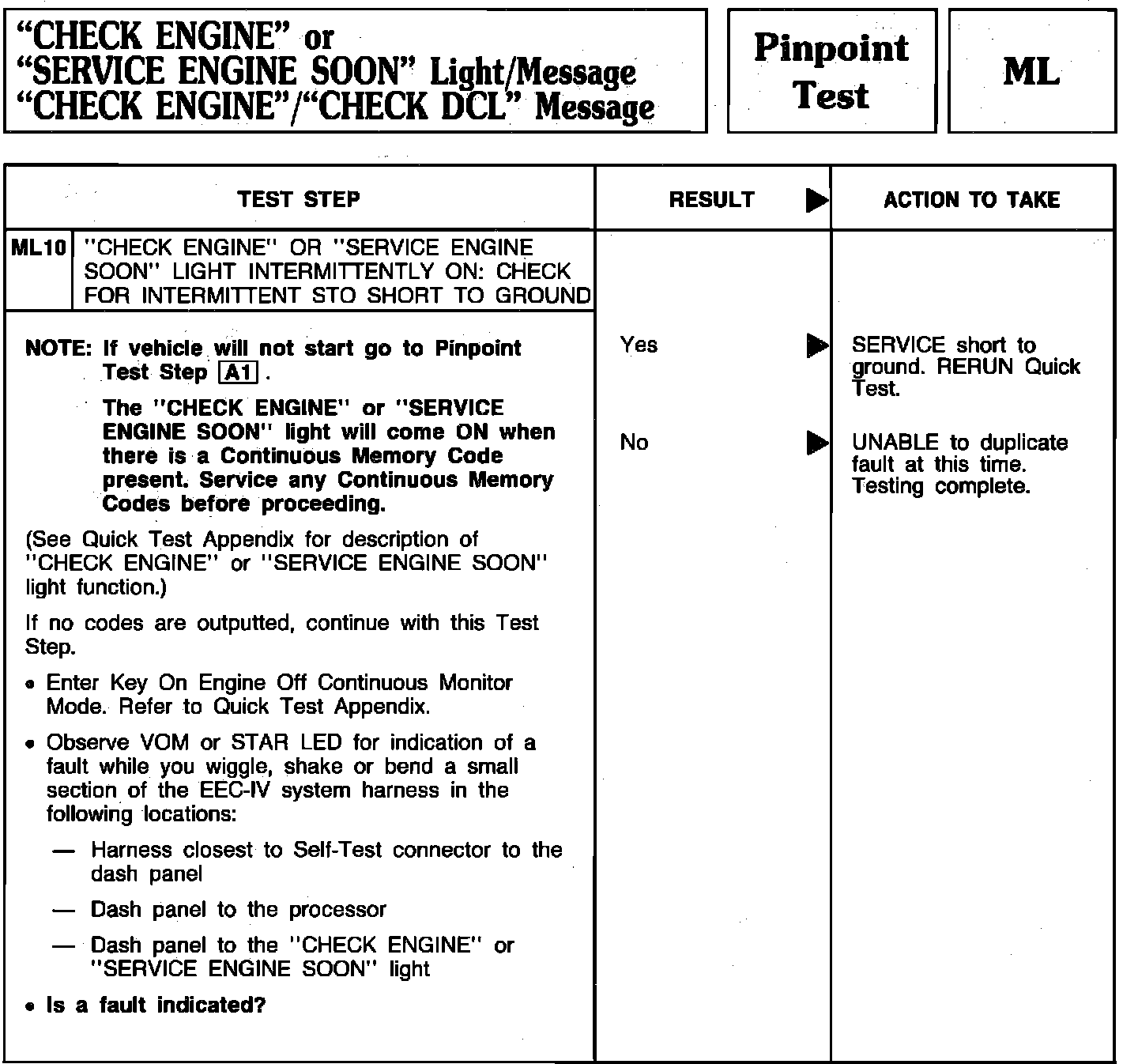 Pinpoint Test ML10 - "CHECK ENGINE" Light/Message/"CHECK DCL" Message: