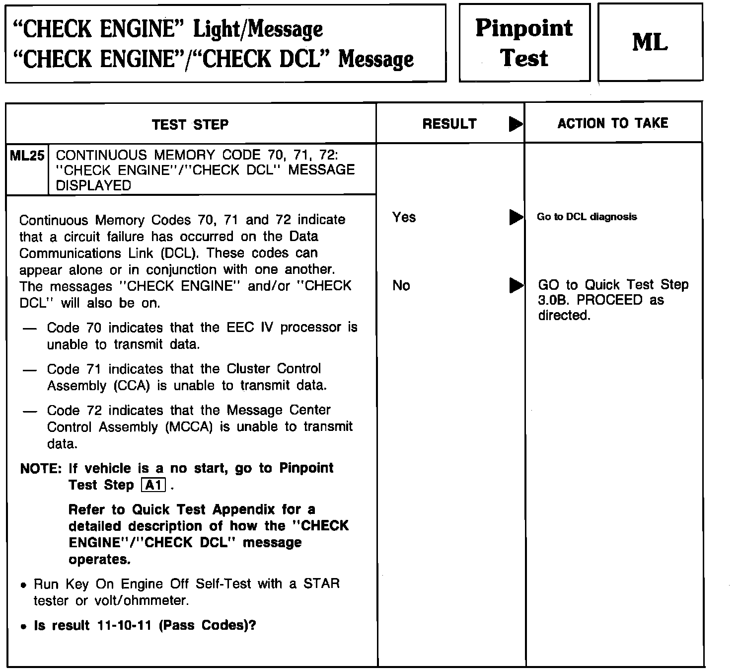 ML25 - CHECK ENGINE/CHECK DCL Message: