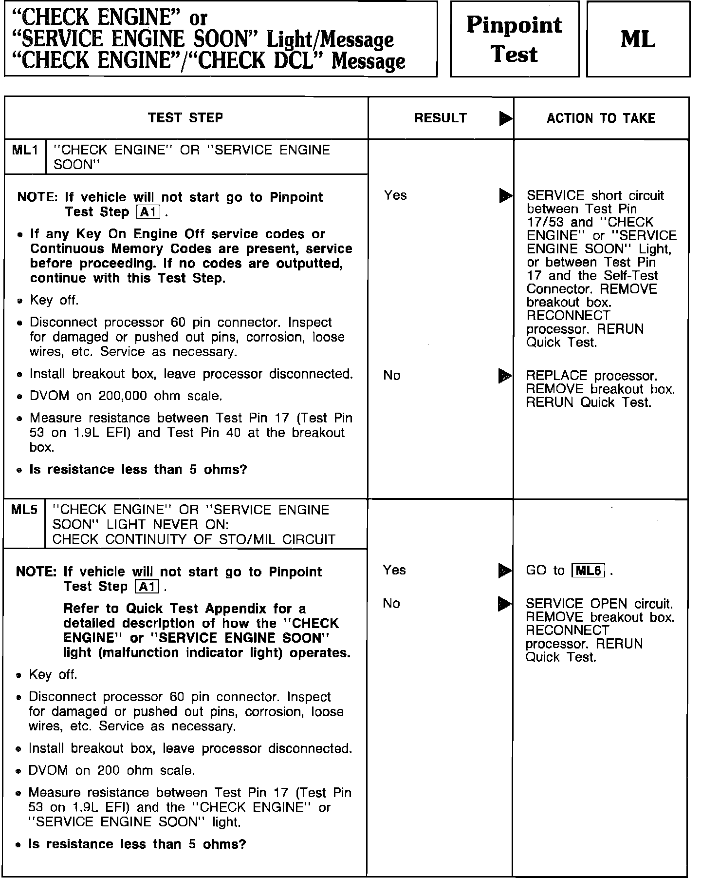 Pinpoint Test ML1 & ML5 - "CHECK ENGINE" Light/Message/"CHECK DCL" Message: