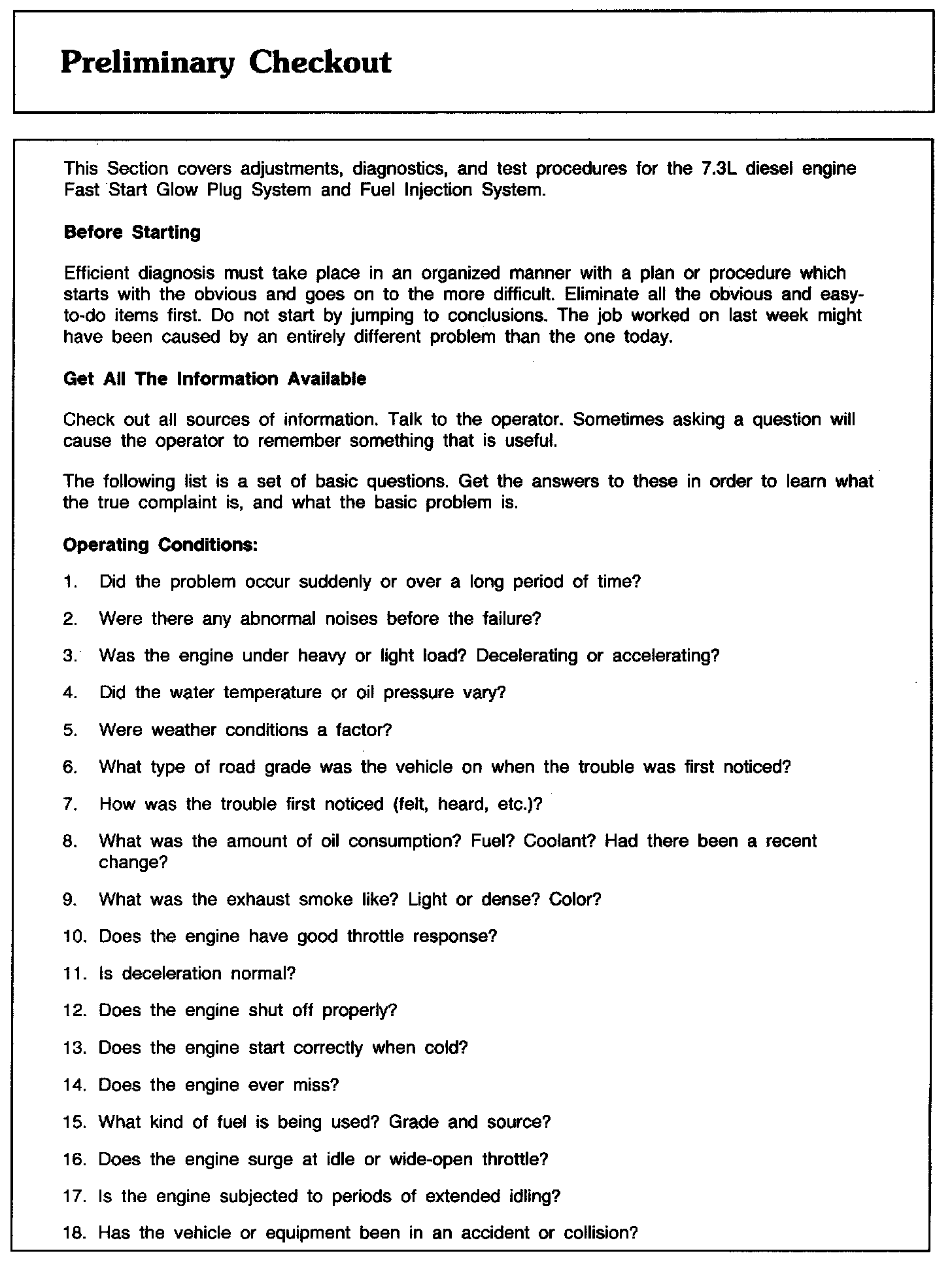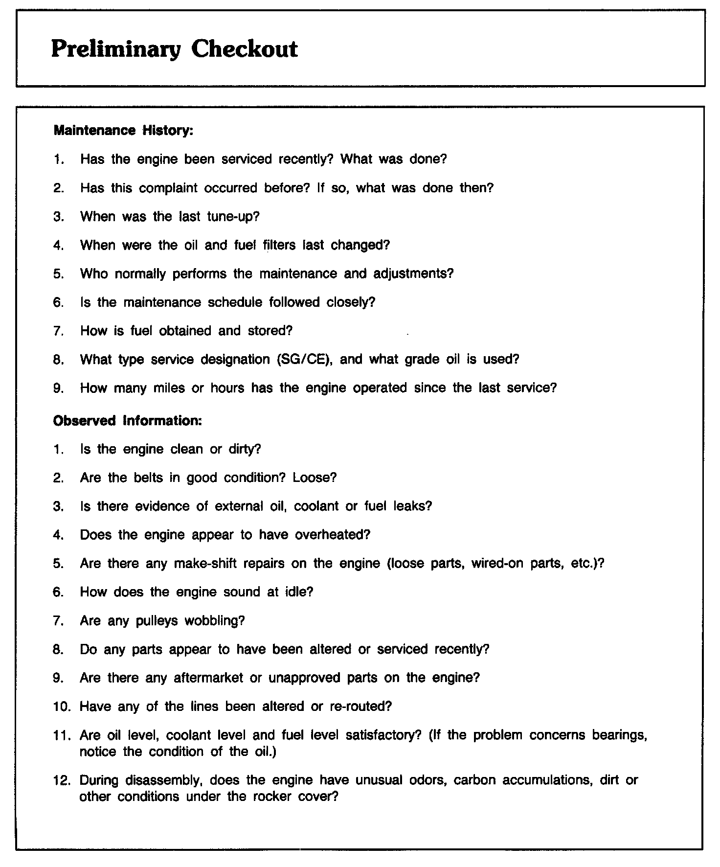 Preliminary Checkout