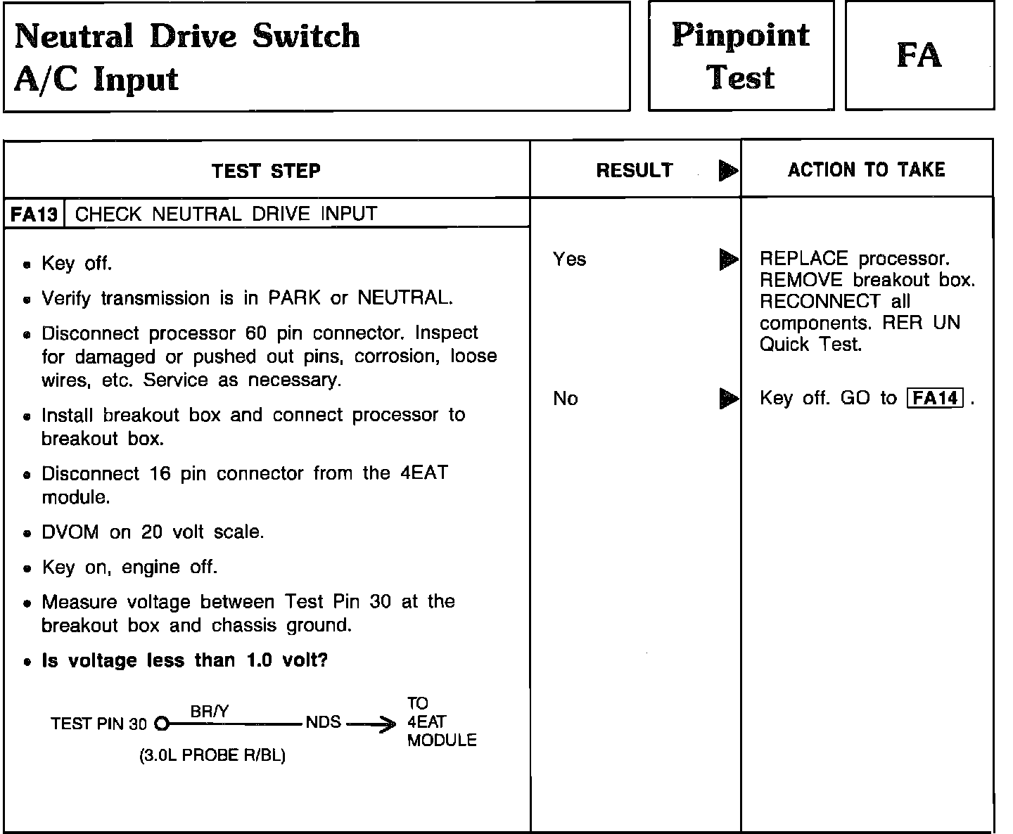 Pinpoint Test FA13 - Neutral Drive Switch A/C Input: