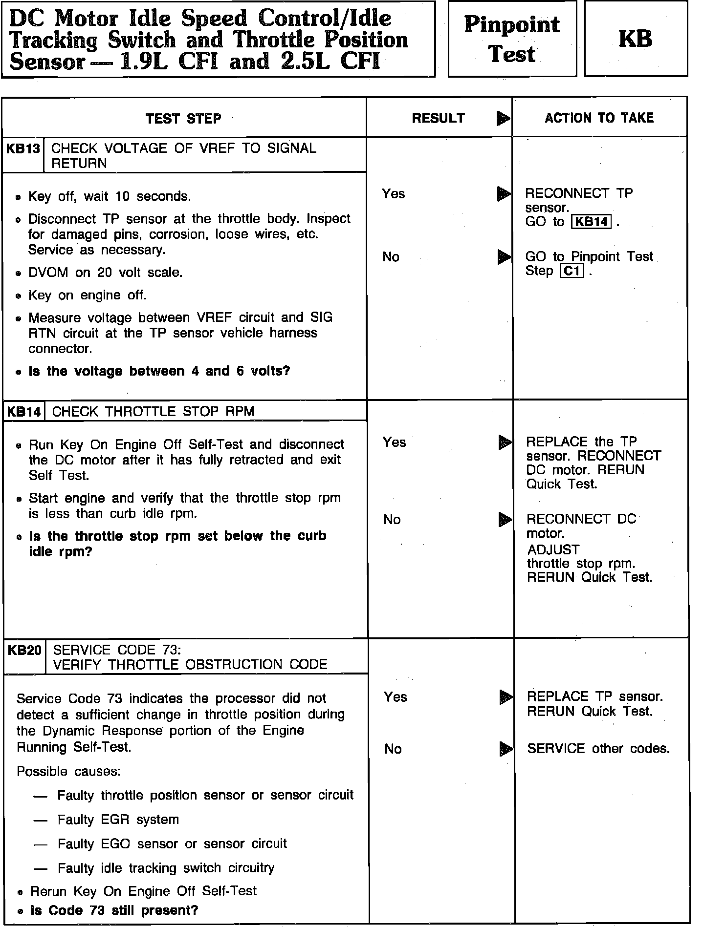 Pinpoint Test KB13 Thru KB20 - DC Motor Idle Speed Control/Idle Tracking Switch/TPS:
