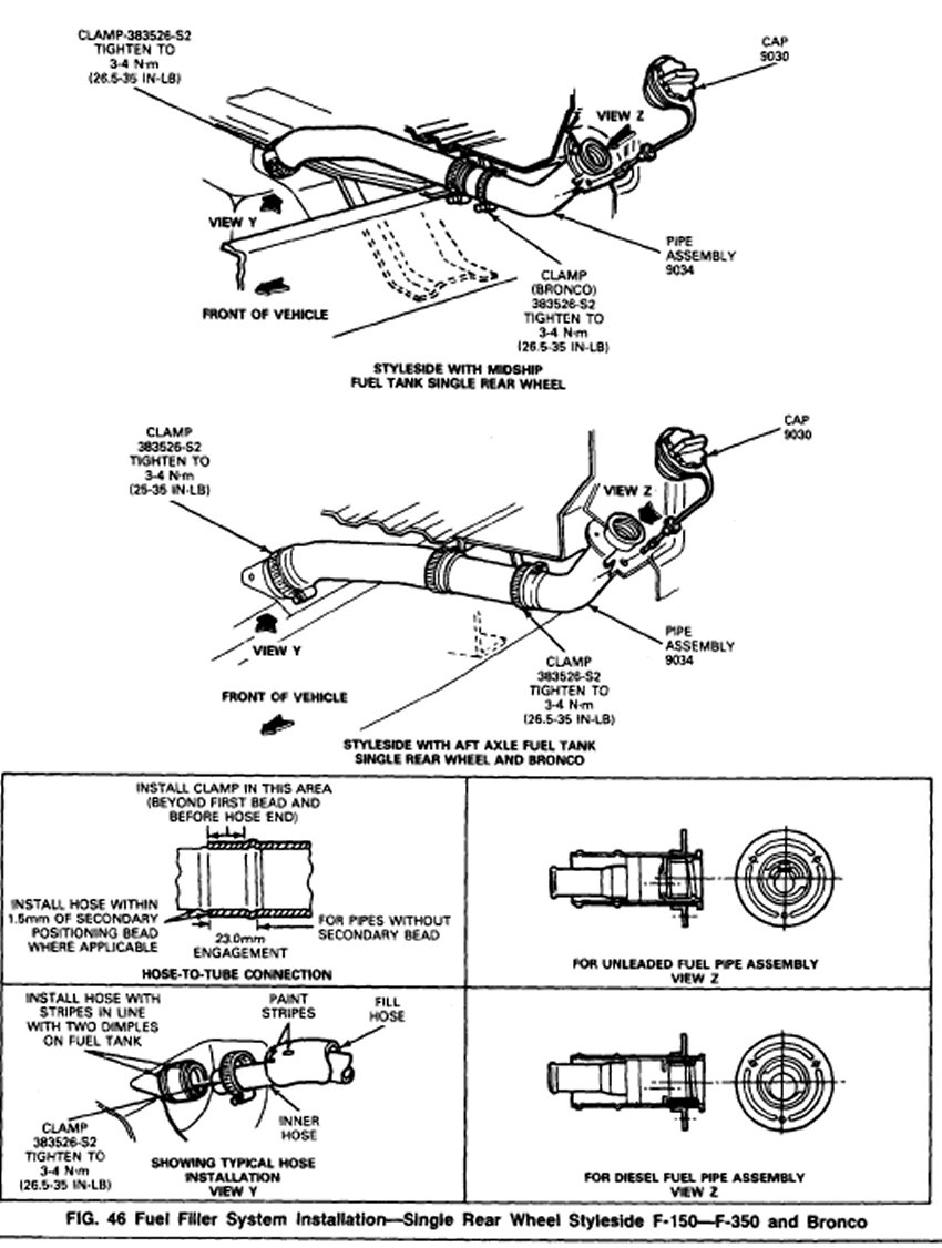 Fuel Filler System Installation Single Rear Wheel Styleside F150-F350 and Bronco.