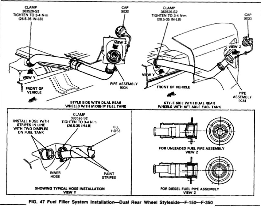 Fuel Filler System Installation Dual Rear Wheel Styleside F150-F350.