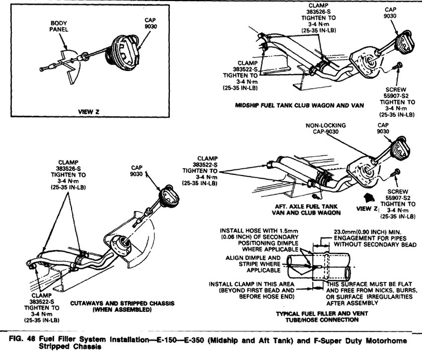 Fuel Filler System Installation E150-E350 (Midship and Aft Tank) and F-Super Duty Motorhome stripped Chassis.
