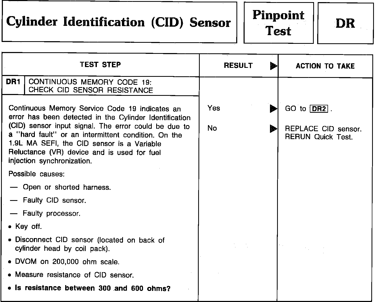 Pinpoint Test DR1 - Cylinder Identification (CID) Sensor: