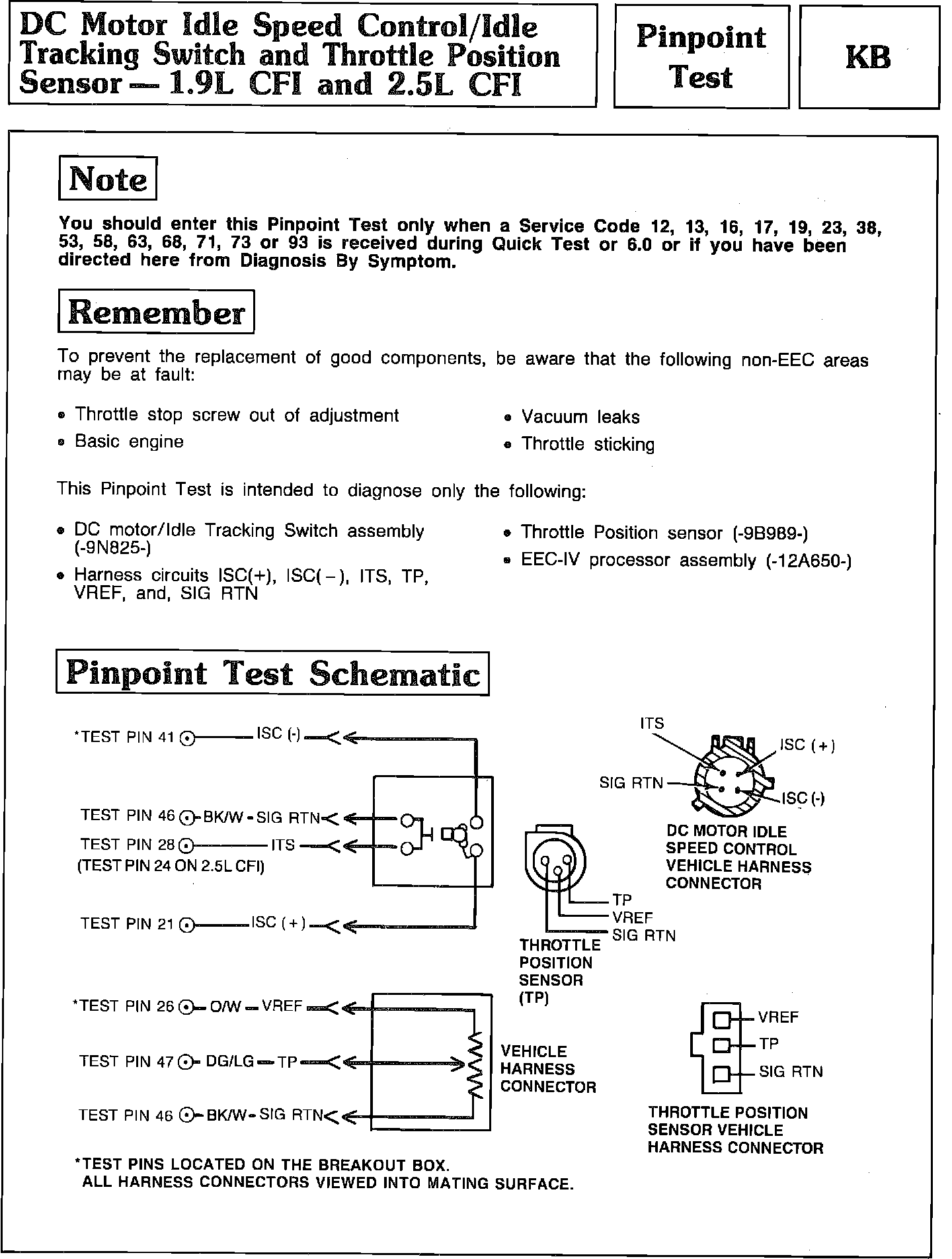 Pinpoint Test KB - DC Motor Idle Speed Control/Idle Tracking Switch/TPS: