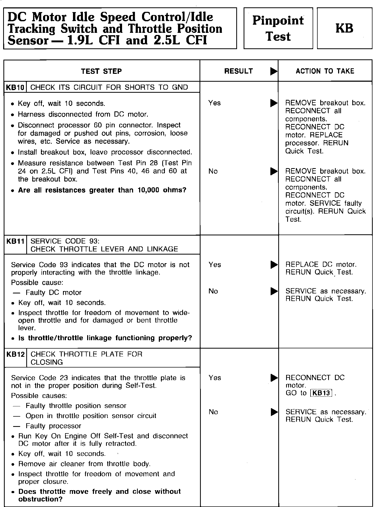 Pinpoint Test KB10 Thru KB12 - DC Motor Idle Speed Control/Idle Tracking Switch/TPS: