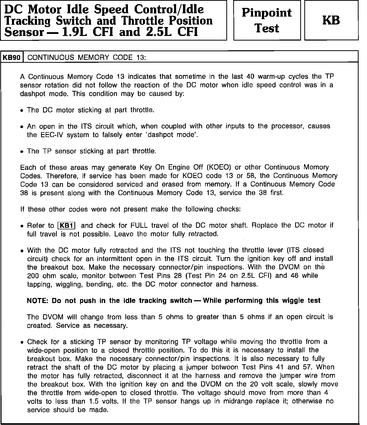 Pinpoint Test KB90 - DC Motor Idle Speed Control/Idle Tracking Switch/TPS: