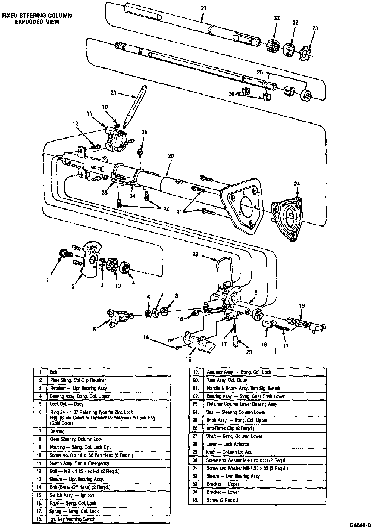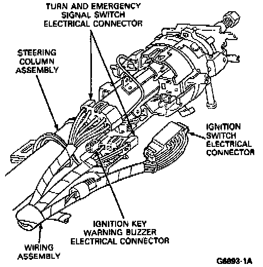 4. Remove the trim shroud by removing the 4 screws at the bottom of the shroud. Swing the bottom panel of the shroud open and remove the 2 screws attaching the shroud to the retaining plate. Remove the lock cylinder. Remove the shroud by first raising the left side so that the window for the turn signal switch lever is up past the lever receptacle, then pull up on the right side of the shroud until the lock cylinder embossment clears the lock cylinder housing. The shroud then can be worked past the instrument panel.