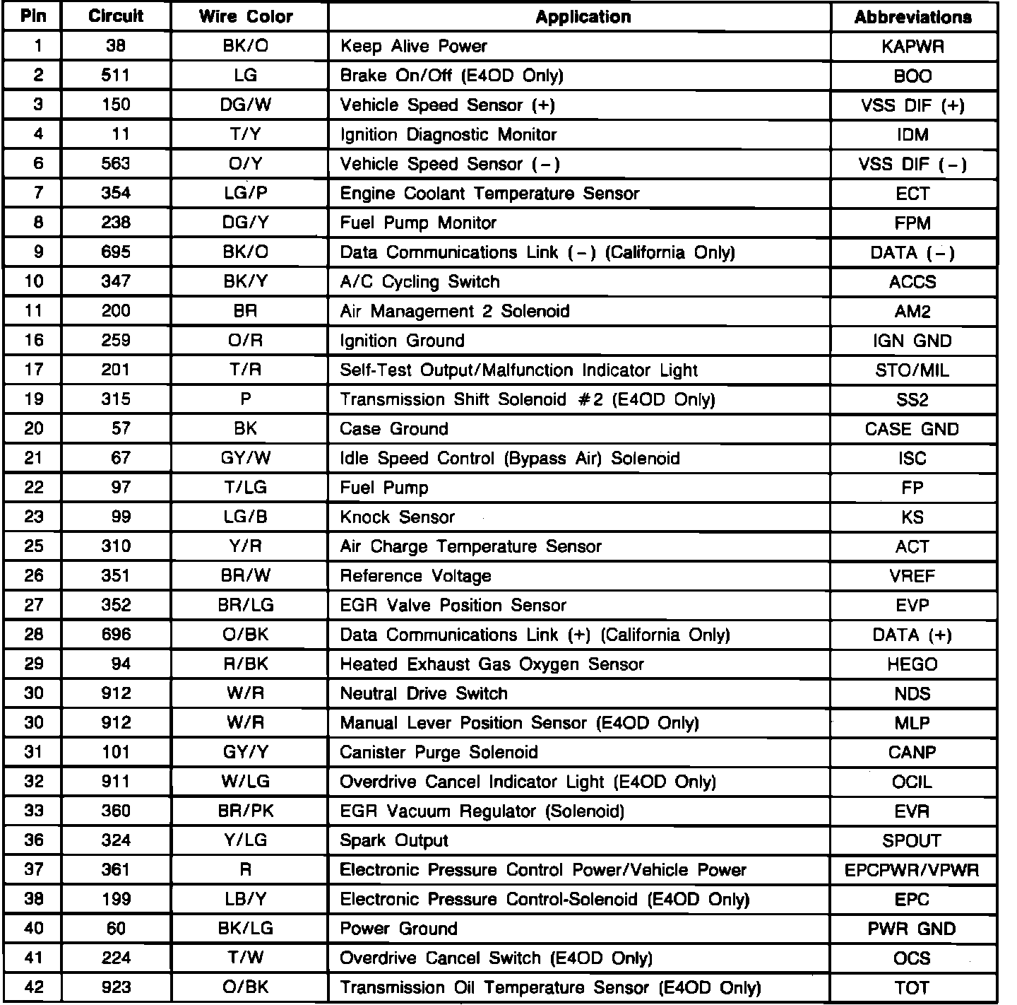 ECA Connector Pin Identification: