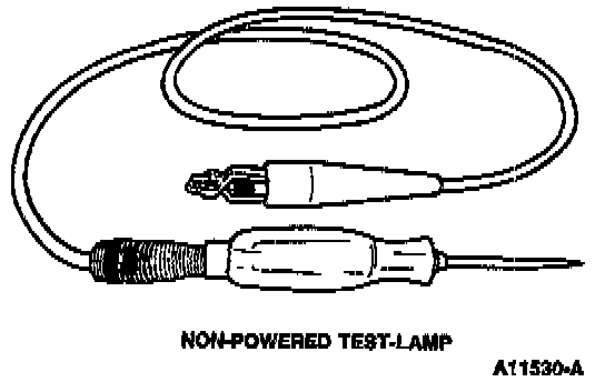 WARNING: The self-powered test light should NOT be connected across a 12 volt circuit. This will cause the 1.5 volt bulb to burn out. To verify working condition of the self-powered test light, touch the ends of the test leads together. If the light is lit, the tester is okay.