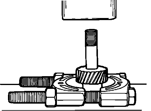 8. Invert distributor and place in axle bearing separator (Rotunda T75L-1165-B, or equivalent) and press off the gear using a press.